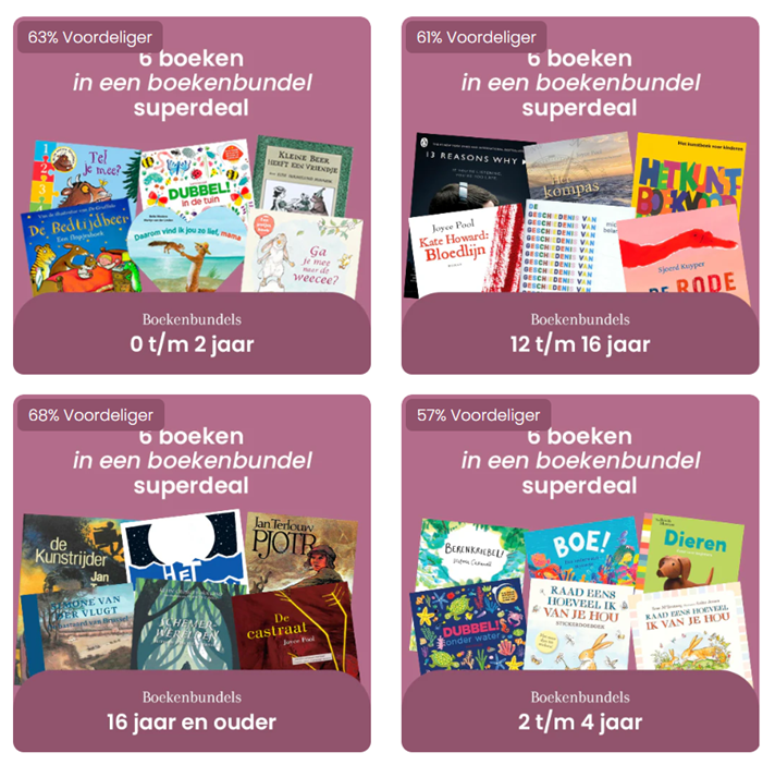 De stichting biedt onder andere de volgende pakketten van zes boeken aan, ze kosten 25 euro per pakket.